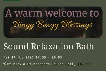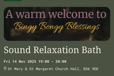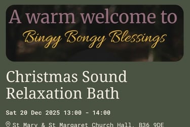 This group sound bath session lasts approximately 1 hour & takes place in various locations around Birmingham. Any group sound bath events & locations I have available are listed in the section below this one.